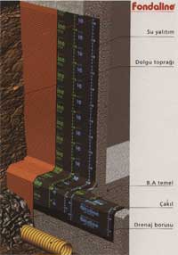 Toprak Altında Kalan Duvarların ve Temellerin Korunması Amaç Yapıların toprak altında kalan kısımları ve özellikle temelleri neme ve zemin suyuna karşı yalıtılmak zorundadır. Aksi takdirde betona işleyen nem zaman içinde betonarme demirinin korozyona uğramasına neden olur. Paslanan demir taşıyıcılık fonksiyonunu kaybeder ve sonunda binanın statik güvenliği tehlikeye girer. Toprak altında yapılan su yalıtımları mutlaka yapı çukurunun doldurulması sırasında gelebilecek çarpmalara karşı korunmalı, yalıtımın delinmesi önlenmelidir. Fondaline, darbeleri yutan özel yapısıyla bu fonksiyonu en iyi şekilde yerine getirir. Ayrıca kabarcıklı yüzeyi, yalıtımın uygulandığı duvar ile arasında sürekli bir drenaj boşluğu kalmasını sağlar, dolayısıyla Fondaline, sadece inşaat sırasında değil, yapının tüm ömrü boyunca görevdedir. Fondaline, zemin suyu olmayan yerlerde de nemli toprağı duvardan uzakta tutmasıyla etkilidir. Bitki köklerine ve topraktan gelebilecek kimyasallara dayanıklı olduğu için, zaman içinde etkisi azalmaz. |