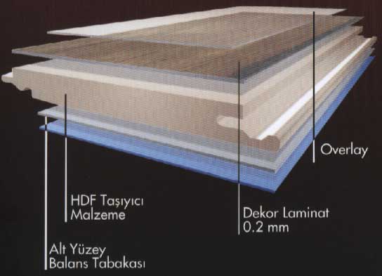 Doğal ahşap görünümü ve mükemmel üst yüzey yapısı sayesinde kaliteli bir yer döşemesidir.